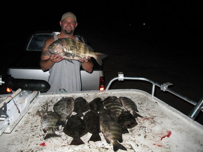 A lot of times you will run across a Sheepshead or two when you're gigging but they are hard to stick most of the time. When you do stick one of any size you better hold on because they are going to swim hard.