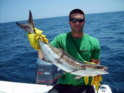 We managed to put only six live baits in the well,which tunred out to be enough for the day. The bite was scarce!Monitoring the radio was not help.After five solid hours of searching for a bite,we mangaged to hook up to a nice Cobia.The fight lasted about 10-15 minutes with the Angler doing a good job of keeping the fish from winning the battle.A successful landing of the fish with a few photos and it was released unharmed.