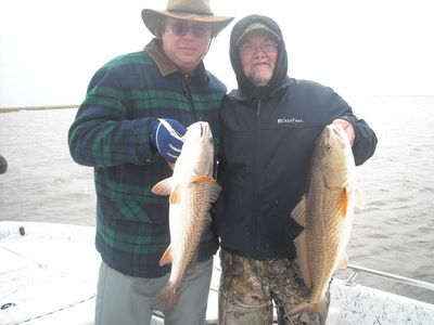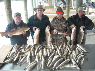 Had the pleasue of fishing with some guy's from the Pensacola area Friday. Wes, Tom, Bill , and Kenny made the trip over to Hopedale Thursday PM and were ready to go friday no matter what the weather. These guy's were seasoned fisherman and wanted to sample the Speckled trout fishing we have in Louisiana and boy did they get a sample. We started of at the first spot and trout were coming in all sides of the boat all pastic no live bait today. The weather was windy and cold but nobody told the fish. Hit 4 or 5 spots and the limit of trout was in the box. Wes said he wanted the guys to get a few reds to strech the line so we tied on some spoons and spinners and the drags started screaming with bronze brutes. Great day witah great group and box full of fish, Did not see another boat out today I guess the weather was to bad to fish, NOT!