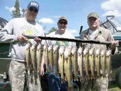 Well, the day started out pretty chilly with frost on the windshields of all the vehicles at our resort. The fishing for us started out cold as well. I had Dale DeWildt and his son Mark from Wisconsin with me today. Dale has fished opening day with me for several years and we've always managed to do quite well. After the first couple hours of today's trip...I was thinking that our streak might be coming to an end. However, we stayed persistent, stayed away from most of the boat traffic, and about 10 a.m. the fish started biting. We caught several fish while trolling Walleyes Choice harnesses behind bottom bouncers in 30-32 fow. Then the wind picked up just enough to do some drifting. We put the trolling rods aways and drifted with floating jig heads tipped with crawler halves for a good part of 3 hrs. The wind died, and we had just enough time to put the boards back out, however this time we headed shallow to some weeds and we caught 4 more keepers while trolling harnesses and in-line weights along a weedline. I-34 was very good for us today as well as I-62. We released many undersized walleyes, some white bass, a sheepshead, and two suckers! Reports from guests at the resort varied from limits to some not catching any fish at all. Water temp went from 51 in the morning to 55 by the time we came in. I think it will get better as the water steadily warms up this week. Here's a picture of today's catch, good luck from all of us in the Bay de Noc area.