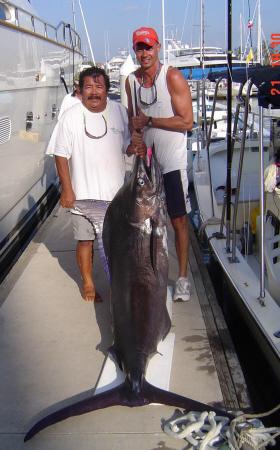 Corbetena and El Banco are still sluggish when is come to action. Naturally the bottom fishing at Corbetena can't be beat, but if you're heading out there for the Yellowfin, well you know the story. Lots of Sailfish and this is where the Giant Blacks are dwelling right now. We're still seeing Black Marlin in the 600 to 800 lb range, but less and less. The averages on the Blacks seem to be in the 250 to 600 lbs. The Yellowfin are in the 200 lb range, if you can turn their heads. It's like getting your wife's attention when she's watching Opra, you gotta try, but your expectations are low!