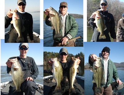 This report is for Fri, Sat, and Sun. All three days were tough with the best fishing coming after lunch each day. Friday and Saturday had 6 hour trips with clients wanting to learn about the lake for a tournament they have in April. Friday we boated 3 with 2 near 5 lbs and another right at 4 all caught on jigs in the same area on grasslines. Saturday the fishing was a little better boating 3 all good keepers on crankbaits on grasslines. After the trip I went looking around from 3pm-4pm caught 5 with 3 keepers all 3-4 lbs and lost a big fish near the boat all on crankbaits on grasslines. Best 5 on the day would have been 18-19 lbs. Sunday got out with dad fishing different areas and the morning was tough boating 3 and missing a few others with the best fish 4 lbs. The fishing seems to be better in the afternoon and the water temp is rising a little each day. Warmest I've seen is 44-45. Hopfully with improving weather the fishing will get better. I have a few days open in March and April.
