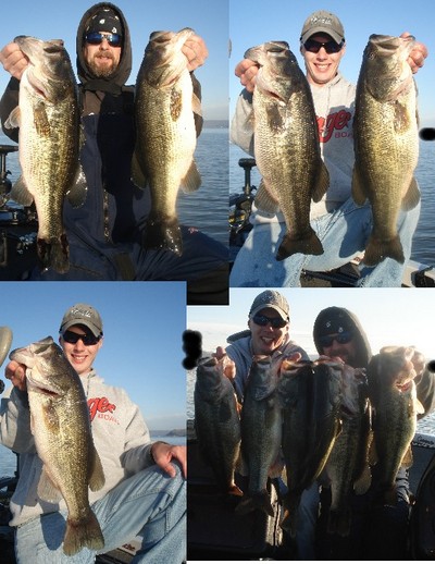 This week was great in the beginning before the deep freeze set in. Got out Monday fished from 10-3 and the big fish were biting. We landed 7 fish with the best 5 weighing 30 lbs. We had 3 fish over 6 lbs and 2 fish over 5 lbs. All fish were caught in 7-12ft on outside edges and drops with Choo Choo jigs and jerkbaits. When this cold snap passes the fishing should get back to what it was. I have days open and am booking for the spring months.