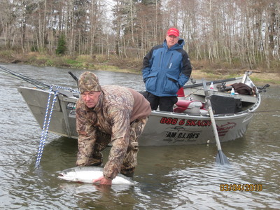 Some nice Spring Chinook have allready been showing on the Lewis and Cowlitz rivers. These are all hatchery fish and we are all anticipating the big surge of fish that are forecasted for these Columbia tribs. Most people are backtrolling baitdivers with shrimp, Kwikfish or hover fishing with Sardine, hearing or eggs. Also Being picked up are some beautiful Spring Steelhead in many washington rivers, What a great year it has been! Check our weekday specials for this summers action on our web site reports page. Thanks to all that joined us this last week.