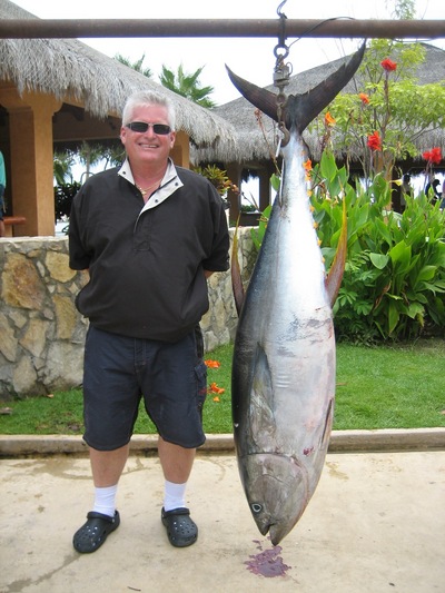 On Friday there was 194 lb. yellowfin tuna landed by Frank Harbin of Chico, Ca. Frank hooked into the monster on the Iman Bank while drift fishing with a jurelito. Aboard a 22 ft. panga and using a lighter and lengthy flexible rod, he battled this fish for some six hours, with help from the crew, was finally able to bring it to gaff, but on the first attempt the fish took the gaff out of the mates hands and headed back towards the bottom, close to an hour later on their second gaff attempt they had success.