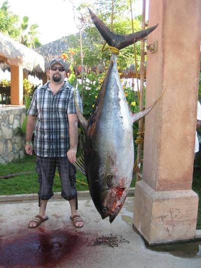 The cow bells are ringing on the Gordo Banks.There were more larger yellowfin tuna caught this week, the Gordo Banks produced quite a few yellowfin tuna over 100 pounds and maybe ten tuna over 200 pounds were landed by the combined Puerto Los Cabos fleet of pangas and larger sportfishers, largest we actually weighed in was 245 lb. Most of these tuna were found around the Inner Gordo Bank, they hit on whole baits, as well as chunk bait. A handful of fish were hooked throughout the morning hours and then local private charters were having a bit more success dung the afternoon sessions. On Tuesday evening there was a black marlin brought in by a trio of local La Playita anglers that was weighed in at 640 lb., largest black we have heard about so far this season. Last week there was a blue marlin landed out of Cabo San Lucas that went 720 pounds.