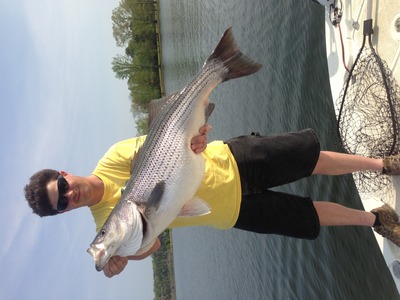 It's been a roller coaster week, with some bad days and some great days. Things look to be moving in the right direction. We slammed them on topwater and pulling live bait with both planner boards and in-line floats. While most lakes striper have already made a push for shallow water. It's just starting on Smith Lake, with the stripes main push still to come. Every fish were catching is fat and feeding up. Not to mention you cooler will have plenty milk like substance in it. There so close, these next couple of weeks should be some fantastic fishing. We're catching some shallow but we are also catching them schooling over water as deep as 100 feet close or on the main channel. Topwater and live bait using planner boards or in-line floats have been the most productive ways to catch fish. Checkout my website for more info and pictures www.striper247smithlake.com or www.fishing24-7guideservice.com. I have very few opening in April and with night fishing picking up there will be even fewer spot. I still have a couple weekend spaces open in May so give me a call and I'll be happy to go over the dates and time I have available.