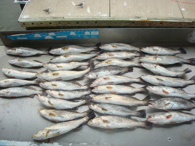 The mourning bite was REALLY SLOW we only had 3 trout on the incoming tide. The afternoon bite on the other hand was totally the opposite. Within two hours we had 32 trout a couple of nice reds and a few black drum. All of the fish were caught in the sound and a couple hours into the outgoing tide.