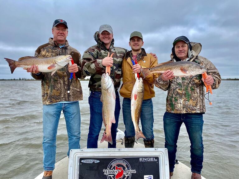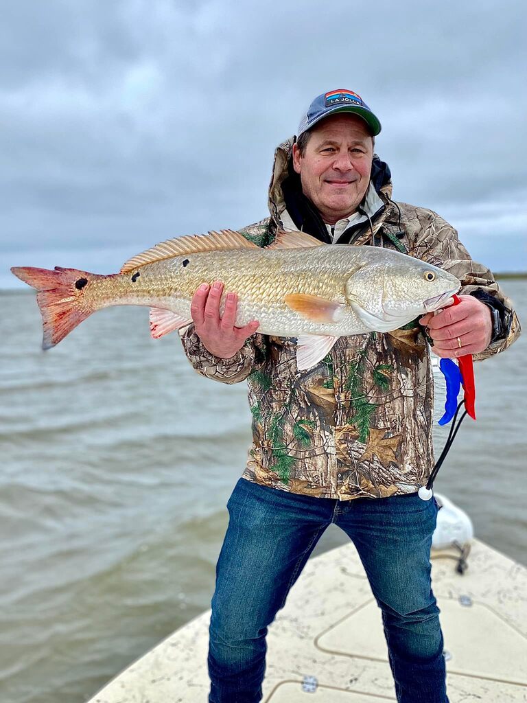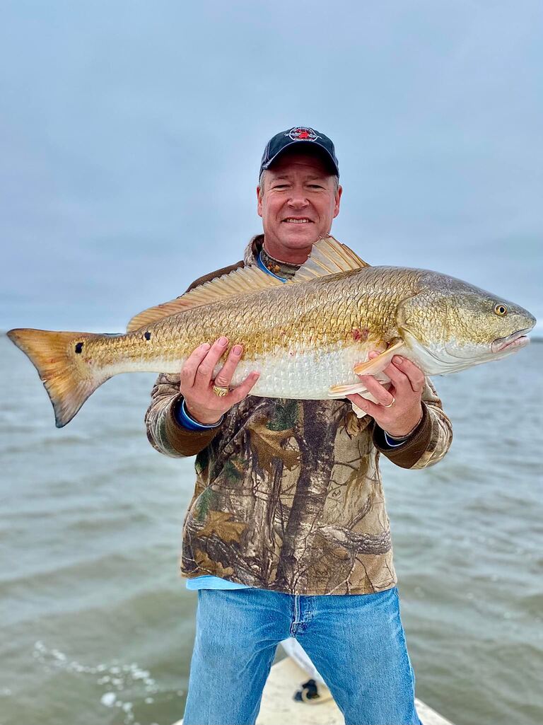 A recent trip with Dave Sudderth, his son Dean and family out of Houston, TX. Heavy fog, clouds, big north winds and cold temperatures greeted us first thing so we made a long safe run to our first spot. We got on a slow bite boating a few eaters before moving further south and getting back on the fish. They caught plenty and released the big ones before calling it a day.