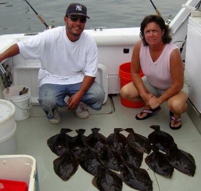 After Capt Carm hit them pretty good twice yesterday we hit the same spot this morning with April and Hector, After 3 hours they both almost limited out so we headed in to get the boat ready for the PM trip, Will post results later the LOCAL fluke action has picked up nicely.