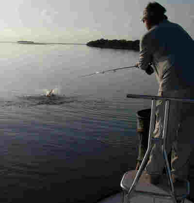Sunday was supposed to be mostly sunny.. It was solid cloud cover.. We changed our bonefish plan to tarpon.. After checking several spots we found a shrimp hatch. Joan and Ob each fed tarpon gurglers... I love watching tarpon smash a surface fly..