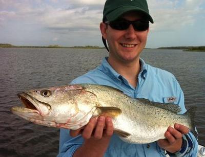 Summer 2013 is knocking on the door, water temperatures on the rise, subtropical baitfish and birds such as the beautiful pink Rosette Spoonbill have come back from the south. Big schools of mullet have returned to the flats of Mosquito Lagoon Florida, afternoon rain showers are beginning, live bait pigfish are getting big enough to be caught in nets, all these signs say summer fishing patterns have arrived. We will be prowling the pristine healthy grass flats on the hunt for Redfish and Seatrout, at times using the mullet schools to point the way to shallow water game fish which hang with the baitfish because of food such as shrimp and baby crabs disturbed from their hiding spots by the rooting mullet digging algae from the grass. Also searching grass edges and mixed bottom which are favorite under water locations for lagoon fish. New client Chris came all the way from Colorado to fish with me for 2 mornings last week, he was rewarded with great fun fishing trips, all catch and release for the traveling angler, here he is with a fantastic 28" Seatrout,and Chris caught his largest Redfish at 30" of the 6 he caught on his visit, also catching uncountable fun Ladyfish and Jack Crevalle on the mixed bag backcountry part of his charters.