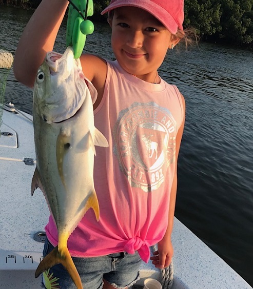 First cast of the trip for little Presley from New Jersey had her pulling on a fun Jack Crevalle setting a great tone for the morning charter ……………..