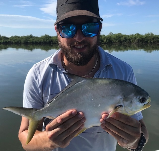 Florida Pompano have been a regular catch in the backwaters here in my area the last few years, they are great fighters being a member of the Jack family, John from Ohio out with a group of very long time regular clients with a nice one …………….