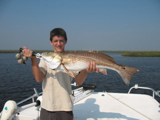 Talking about saving the day! After about 20 minutes of fighting this monster Red on light tackle Tyler had landed his first Red fish ever and it was a back water monster. You don't catch to many Reds like this one in the back waters. It weighed in at 14 lbs and was about 40 inched long. What a way to finish!!!