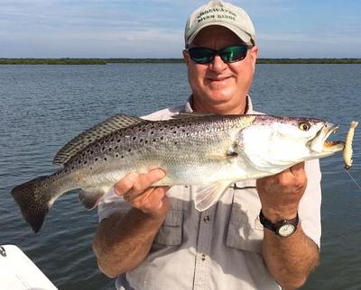 .....................school size Seatrout are a staple catch while variety fishing here Donette with a nice backcountry speck.........................