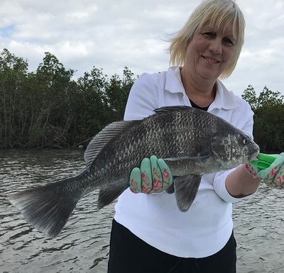 Winter fishing is coming to central Florida, chilly weather finally arriving, water temps dropping into the 60's, Seatrout are widespread through the backcountry on Mosquito Lagoon and Indian river, here at New Smyrna Beach area. still catching lots of different species with recent trips landing, 10, 15, even 19 species on a recent trip. In addition to Trout, catching Redfish, Snook, Sheepshead, Black Drum, Snapper, , Whiting, Pompano, and more. Live shrimp still the go to bait in the backwaters, Kelly caught a good Black Drum out a hole as we caught lots of different species from the same hole............