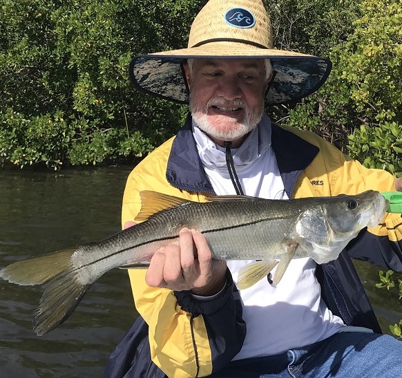 My usual backcountry variety mixed bag trips see lots of different species on most every trip, the usual catches include Seatrout, Black Drum, Jack Crevalle, Ladyfish, Mangrove Snapper, Whiting and always others too, here Jim with a fun little Snook ………...