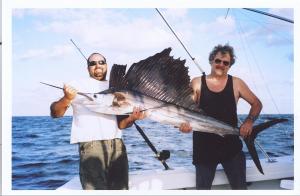 The sea was angry this week. She shook us around like a cowboy riding a bull. Fishing was however excellent this week despite the rough weather. The sailfish are still biting great, even better than last week. Some nice dolphin on the kites too. I've always noticed the fishing is exceptionally good whenever the waters are choppy. I guess activity on the top of the water gets the fish hungry. We caught a few nice dolphin this week on the drift boat, some over 30 pounds. The charter boats have been pulling in some big dolphin too on live baits out of the kite. Some cobia around the shipwrecks are starting to pop up, as are the occassional gag grouper. We haven't been able to go on the swordfishing trip this week because of rough weather so I have nothing to report from that trip. Fish of the week was a 74lb. yellowfin tuna, caught aboard the Big Game. Capt. Johan was kite fishing on the 350' blue water edge when the tuna ate a goggle eye on the surface. Huge explosion in the water when he ate and the angler did battle for 45 minutes to get him in. First yellowfin I've heard of all year. Sharks are starting to make their run down the beach now too. We've caught a few big Hammerheads already and there's been a lot of sighting of others from other boats. Looks like its going to be a good Christmas bite. The weather started laying down yesterday so hopefully well get a few good weeks of beautiful weather. 'Till next week, see ya on the water.