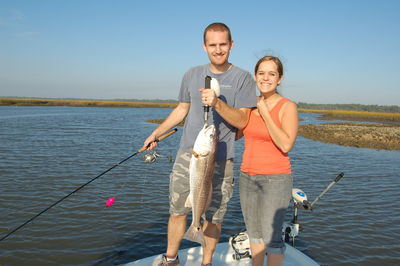 Redfish have also turned on, with many rat reds feeding around oyster beds in feeder creeks to the ICW. Larger slot sized reds are available in the same waters and also at the jetties. Some bull reds are still being caught far up the river in deep water. This leads me to believe there is a resident population of these fish that stays in the river year round.