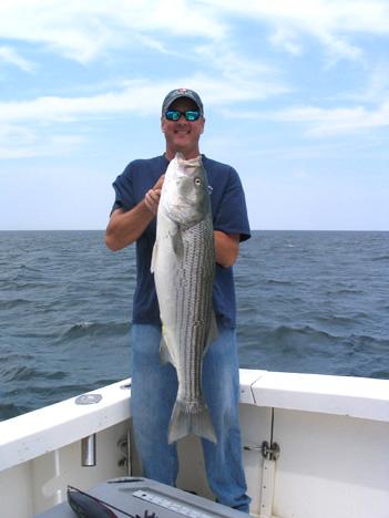 Once we gave up on the tuna we proceeded to fish Race Point and landed several good striped bass and bluefish for Ed and his party to take home for the grill. The highlight of the day was watching Ed and Chris land two beautiful fish on black and red jigs in about 20 feet of water. After the ride home, Jerry filleted everything up and said our goodbyes. I wish Ed good luck with his new assignment this year and want tothank him for his patronage.
