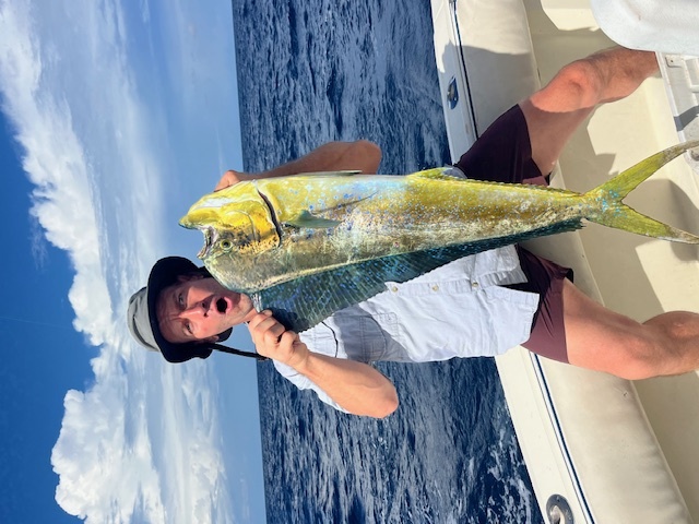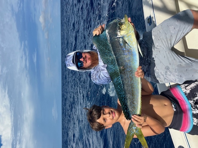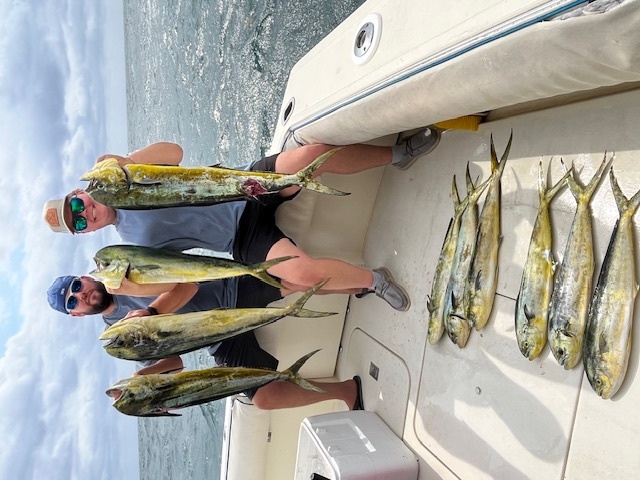 For the rest of the trip, the group continued to patrol the rip currents, scanning for birds and floating debris as they trolled. The teamwork was seamless—Zac and his family hooked fish after fish, reveling in the fast-paced action. By the end of the four-hour charter, they had successfully landed ten Mahi Mahi, each one adding to the thrill of their first saltwater experience. With coolers packed and stories to tell, Zac, his son, and nephew headed back to shore, already talking about their next adventure on the Happy Day Today.