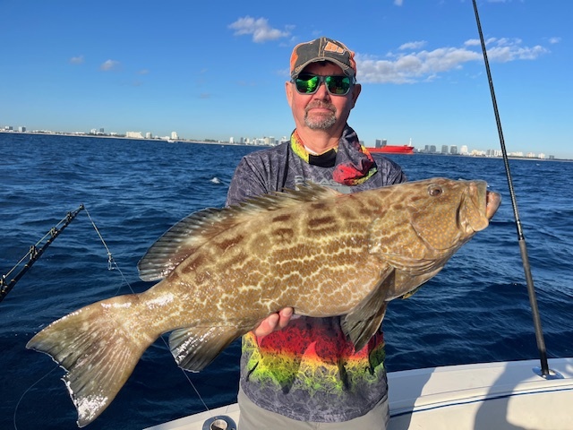 Their first destination was a local Fort Lauderdale sunken shipwreck just a few miles offshore. It didn’t take long for the action to start. They sent down a live bait along with a dead bait rig on a long leader. The dead bait struck first. One of the anglers grabbed the light tackle rod, and a thrilling fight ensued. After a spirited battle, an Amberjack broke the surface. Though impressive, the AJ wasn’t on the menu. The crew removed the hook, vented it, and released the fish back into the deep.