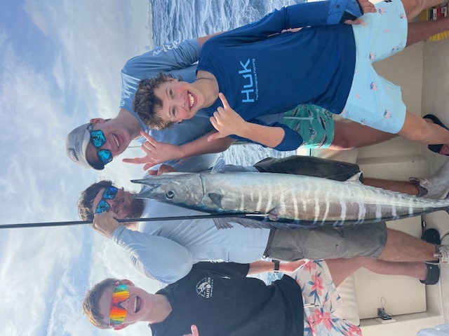 As soon as we cleared the inlet, the vibrant ocean scene welcomed us: a stark line where the deep, cobalt-blue water met the lighter, clean green water near the reef. We positioned the boat along the edge of this blue transition and set the kites, each carrying lively baits dancing just beneath the surface. All eyes were on the lines as we waited for action.