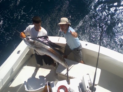 Saturday was sunny and pleasant with a slight swell and basically calm sea conditions. No rain. Again the fishing was good. This afternoons charter was once again fished under a bright and sunny sky. Good fishing once again good with that pictured Sailfish the fish of the trip for our resident Fort Lauderdale angler Itai along with his kids and family.