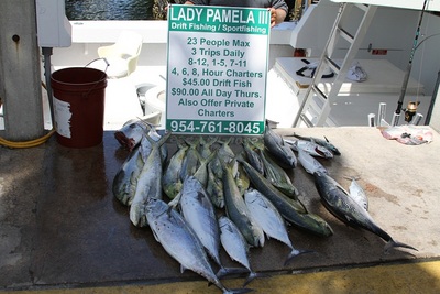 Tonight the Lady Pamela III had a 7 pm‑11 pm snapper trip. We had 10 anglers on the boat and they were busy. The group landed 30 yellowtail and mangrove snappers.