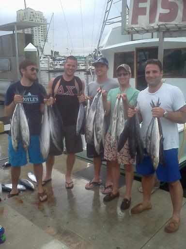 As I criss-crossed the reefs ranging from 80 ft. out to 200 ft. of water, all the anglers took turns bringing in the fish; however, when the rain came down heavy, Matt was the angler that never let the rain stop him. The anglers caught a total of 14 Kingfish and 11 Bonitos.