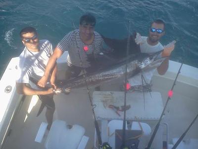What with the warm weather and the up and down fishing with essentially calm seas one would expect virtually no Sailfish action, but we are chipping away at them fairly regularly. Pictured is the Hussain family with a nice warm weather catch and release Sailfish aboard the Marlin My Darlin. Good sized Sails now when we can catch them. The majority of the smaller ones have moved on.