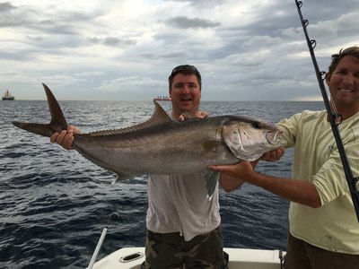 The Deep Sea fishing here in Fort Lauderdale has been pretty steady on most days with some really nice fish hitting the fish box with good regularity. We continue to pick away at an occasional Sailfish both live baiting and also by trolling dead baits. We are again targeting the golden tiles out in water over 700 feet deep when current allows and also essentially on calmer sea condition days. As before not every day is a calm sunny postcard perfect Chamber of commerce day, but is has been very fishable and we tweak the program to fit the conditions when our charter anglers are flexible. Some Blackfin Tunas and of course those Bonito getting in the mix. When a tanker or freighter anchors off shore of here in deeper water of say 250 to 350 feet those ships become Tuna magnets for us and have led to some good catches. Wahoo as well. A day with no anchored ships off the edge and we might well target the Greater Amberjacks that have moved onto the deeper wrecks and structure.