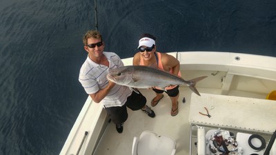 All the Kingfish came were inside on the reefs from 90 to 120 feet of water. Every one on the deeper planer rod lines with Bonito strip and Seawitch heads made by local lure maker Stan Bruer We caught the Jacks on wrecks in 210 and 265 feet of water using live "Bullett Bonito" for bait. The Vermillion Snappers came off of structure in 300 to 330 feet of water and they were good sized fish eating cut fresh Bonito we used for bait. The Red Grouper ate Bonito off of a wreck in 85 feet of water. The Sailfish, Blackfin Tunas and common Bonitos all took Bonito strips fished on the surface lines. That lone Mahi-Mahi took a rigged BallyHoo off the surface.