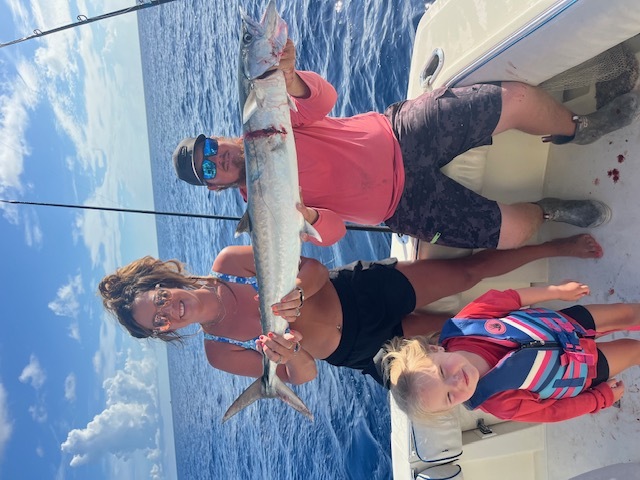 On July 27th Rusty Howard, who has fished with us many times in the past, brought his wife and daughter out for a 6-hour fishing charter in Fort Lauderdale. To begin the trip, we started at the sea buoy catching bait. This was a perfect fit to get his young daughter some fish, as well as loading up the bait well with some freshly caught Blue Runners and Speedo baits.