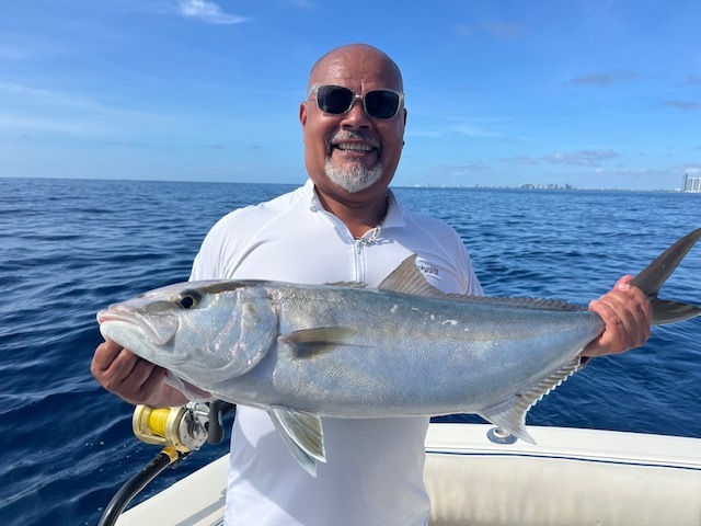 Luis from Miami booked us for an all-day fishing charter in Fort Lauderdale aboard the “Happy Day Today” from 7:30 am to 3:30 pm. We had good conditions with light easterly winds and 1-to-2-foot waves. We left Bahia Mar Marina, and within 25 minutes had lines in the water. Fortunately, deep water is located just a few miles off the Fort Lauderdale beaches.