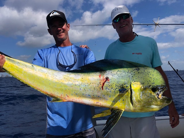We started the morning with nice weather, easterly winds, clear blue skies, and some scattered weeds. The group drove over from the west coast of Florida to fish out of Fort Lauderdale as we have deep waters only a few miles offshore. On average, in 20 minutes from leaving the marina, we will be fishing in 300 feet of water. They were wanting a fun day on the water catching fish with some to take home to eat, which is what we set out to accomplish.