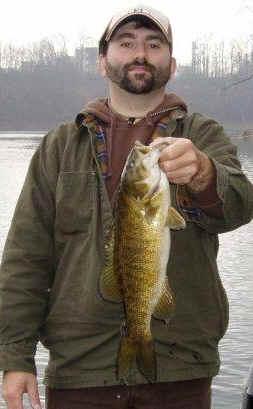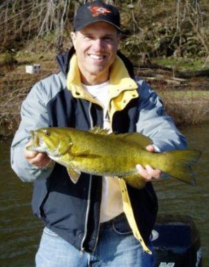 An occasional jerkbait fish is possible as well. Slow is the rule for presenting lures. Monday, Chris Gorsuch and Mike Novis fished with me on a real tough bite, even for winter. We caught 6 smallies and had 3 others dropped at boatside. Jake Cole and I boated 15 smallies Tueaday on grubs and Don's Jigs. Bites are very mushy, but distinct when you are used to it. We boated a 4 lb 2 oz brute on a millennium jig. On Thursday, Vince Keiper and I boated 21 smallmouth and a walleye....No I did not bang my head on the gunwale!