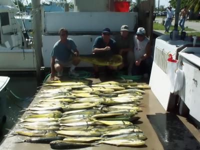 this morning was a bit windy but the wind blew in some grass that had alot of Dolphin in it. Some fish were small but we managed to get some nice schoolies to. We ended up with about 20 fish, in the 4 to 8 pound class. We had some bonito's on the Kite but no sailfish this morning. We ony tried for about 30 minute till be figured out the dolphin were on the birds in 200 ft. Some of the boats caught sailfish but it was slower today. Yesterday we had 5 sailfish out of 7 bites.