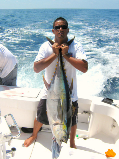 Having said all that, this week we´re seeing another change for the better. This week we´ve seen some 300 lb Yellowfin Tuna boated at El Banco. For the most part the Yellowfin have been in the 100 pound range. Right now we´re real happy to have any Yellowfin at our World famous fishing grounds. But there are other species at The Bank as well. Black and Blue Marlin are and have been coming back into the area and this is a good sign indeed. Last week I mentioned that there were some flying fish here at El Banco. I was expecting this to draw in the Pelagic or billfish, but it didn´t. Now trolling live bait on the surface and running a down rigger will cover your bases and give you the best chance at a Gamefish you´re going to get. Sailfish and Mahi are here as well, so if you´ve been saving your pennies for fuel, now would be a good time to shake the piggy bank!