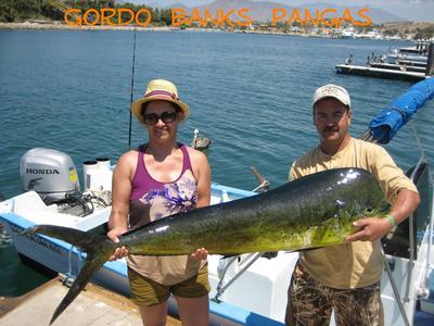 For the past week now the only consistent action for the fleet launching from San Jose del Cabo has been found close along the shoreline for roosterfish or far to the northeast, 20 to 30 miles, this is where a series set buoys, 4 to 8 miles offshore, have been attracting schools of dorado and in recent days some yellowfin tuna in the 10 to 20 pound class were encountered. Sizes of the dorado ranged from 5 to 50 pounds. Fish were striking on caballito, mullet, small skipjack and particularly on sardinas, for anglers that were able to purchase them, which was only for fleets from north of Los Frailes. Trolling with hoochie skirts worked well as well. Crowds of boats was a problem, since this area was producing the only consistent action, fleets from Los Barilles, Buena Vista, San Jose del Cabo and even from Cabo San Lucas all were making the unusually long runs to get into this bite. This is a lot of pressure for a handful of buoys, these are set lines for commercial shark pangeros, more often than not it was the first boats to the individual buoys that encountered the hungry bull dorado, some of them in the 30 to 50 lb. class, then later as more boats arrived it was mainly the smaller schoolies that provided action. The limit on these popular acrobatic gamefish is two per license, apparently many of the East Cape boats have not been informed of these regulations, or perhaps the authorities just do not have the personnel in order to enforce these rules on the East Cape, they strictly abide by the two dorado limit rule out of the Los Cabos area. Many local charters reported that East Cape charters were reportedly seen gaffing and killing as many as 15 to 20 dorado per boat, when there were only two or three, sometimes four anglers aboard. These rules should be enforced equally, not just for certain areas. Why would anglers want to fish in one area and only be able to catch two dorado when they can go to other places that let you catch many more?