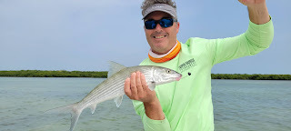 My afternoon trip was with Tim and Mark and these guys were awesome so we focused on bonefishing. Tim hooked a nice fish and got it to the boat but the fish broke off as it got under the boat and by the trim tab. Then not long after Mark hooked a big bonefish but it came off almost immediately. Finally with almost no time left and us having to head in Tim hooks up again and finally gets his bonefish. Close call!