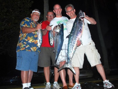 Chuck and family from a small "HOME TOWN" of Mitchell, South Dakota came fishing aboard the Lady Pamela 3 on our daily drift fishing trip yesterday. The fishing was excellent the boat caught some big trigger fish, a few 8-12 pound bonitos and a big kingfish. At the last moment of the trip, we had to reel in and head back home. Right at this time Chuck hooked in to a monster fish. He fought the fish for a while and when it came up to the surface, Joe, the first mate on the boat shouted, monster kingfish. The deckhands rushed to grab the bigger gaff and ran to the corner of the boat to gaff the king. Good job Chuck on catching the biggest fish of the trip, a 30 king fish. May is a good month for catching a wide variety of bottom fish and surface feeders on the drift boat. On the Drift fishing we are also catching kingfish, mutton snappers, yellowtail snappers, grouper, bonito and black fin tunas. There is some good deep sea fishing out there these days