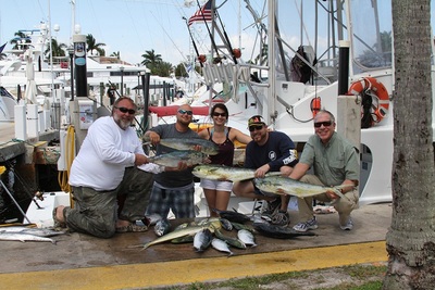Fishing today was great. March is a good month to catch Mahi – Mahi in Fort Lauderdale, Florida. Not only are the Mahi – Mahi biting nicely in March, the Blue Marlin, White Marlin, Sailfish, Barracuda, Amberjacks and Game Sharks (Hammerhead Shark, Tiger Shark, Mako Shark, Thresher Shark) are showing up in good numbers. Today, Jamie, a local guy from Fort Lauderdale, Willy, a North Carolina native and Ron from Michigan left the dock at 8 AM sharp aboard the Lady Pamela III. The bite was non stop and they called it a day with 20 Mahi – Mahi and 12 Bonito fish in the boat.