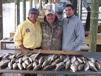 Cold morning this morning first one this season and super low winter tide. Charlie, Dave, and Bradley showed up wearing jackets and kept them on all morning with the breezy conditions keeping it chilly. First time I have seen mud on the banks in a while. It took a while to find the trout with the drastic conditions change and the bite was slow but steady. We had to drift and troll to find the trout with the low tide they were about 50 yds off the banks. Once you caught one or two you had to anchor up and fish live shrimp 2 ft deep and wait out the bite. With the dirty water it took the trout a while to find the bait but we would catch a fish every few minutes or so slowly building a box. What was nice was the trout were nice sized with a few up to 3 lbs. By late morning the guy's had there limit on ice and were ready to head to the house. Big Plus was we got to witness the first flight of ducks into our area with flocks of Gadwalls and Teal dropping out the clouds and settling into the marsh an AWESOME SIGHT. It had my trigger finger itching with duck season only a few weeks away. Can't wait to Nov. 10th.