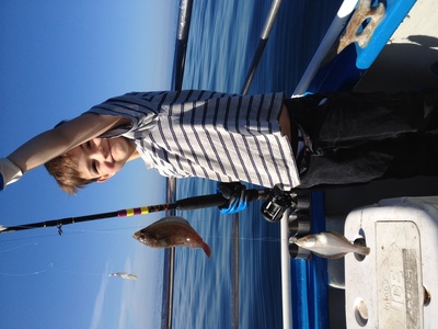 All was beautiful on Lake Pacific. It was difficult to imagine how it could have been better than yesterday, but it was. Huli Cat start out for Dungeness crab. After 13 limits, I headed out for Sand dabs. The first spot off San Gregorio in 240 ft produced kingfish, but no sand dabs. It seems like when the sand dabs are there, you get them rather readily. Moved up about six miles, off Martins Beach in 210 feet of water. Many times it was a dab on every hook. Second try of the Ahi SB-700 Sand dab rig. Needs a few more tries, but preliminary results, it did not outfish smaller sabiki rigs and was more difficult to handle and considerably more expensive.