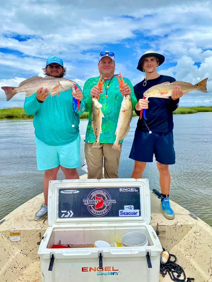 Richard Ezell along with sons Michael and Nick were aboard the Majek for their turn chasing these Delacroix redfish. We got on an early bite keeping enough for a shore lunch at Crave after the trip. We made several moves catching a few, missing a few and releasing the rest until the weather forced us in. A great day with a great crew that stayed with it on a tough day!!