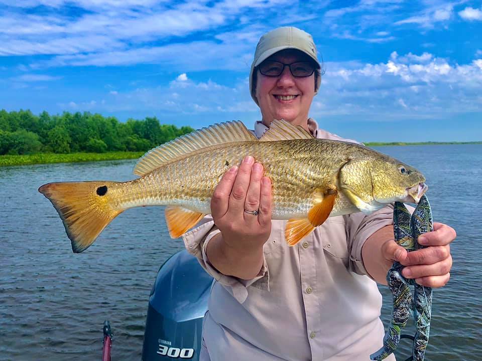 Yesterday Warren and Jill from PA board the Majek and headed out after their share of Delacroix redfish. They flew in for a short vacation and to get in a trip they booked with us during the Great American Outdoor show earlier this year. They only wanted to keep enough for lunch, so we knocked those out quickly and played catch and release the rest of the day. Final count 25 keeper reds (4 of those unlucky lunch dates). Great crew that was a pleasure to fish with.
