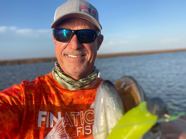 Surface water temperature 64 to 69 degrees, good water clarity, but the further east you get the darker the water gets. Winds South and 8 to 11 mph. Mosquitos are still on the scale of irritating to brutal, depending upon the wind speed, direction and how close you are to the marsh. MarshLand Spray has been the best for us so far, and we tend to use about a can or so in the morning on the water. Mornings have provided us with some very strong outgoing tides, and the conditions for catching good numbers of fish were lined up to be excellent. We started on the South shoreline, and saw a tailing red, but could not get it to commit. Cruised down the bank with the TM, and managed a couple bites, but no takers. Moved over to a shell ledge and made a number of casts without hooking up and moved up into the marsh and fished some deeper channel ledges and caught a couple of short fish. Moved once again and found some good current and the fish were stacked up on some shell about 75 yards off the shoreline and it was non-stop action for a couple hours. We did have to weed through a number of smaller fish, but caught limits of Speckled Sea Trout, all on artificial lures, consisting mainly of ¼ oz heads with Limetreuse tails performing the best. Caught a couple on Paul Brown Corkys, but the tails performed the best by far. Moved once again and managed a couple fish off a long point close to a large drain with current, but not a consistent bite. Moved over to Little Pasture Bayou and managed one keeper trout, but not what we had hoped for. Took a break for lunch and ventured back out and the fish we found earlier were still stacked and eating resulting in a couple more limits of trout, and a 29” Redfish. All fish were caught and released to live another day.