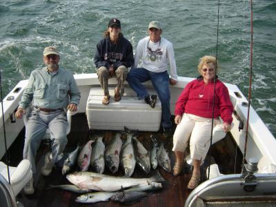 A week or so ago I got a phone call from Ed Darien. He wanted to go fishing in Cape Cod Bay and try and hook up on some stripers. We settle on the full day trip on Thursday the 6th of September. On the morning we set out for Billingsgate Shoals with the hope of finding a few legal size stripers. Ed brought a long his daughter Krissy and her husband Lance Morrow and the friend they stay with in Brewster, Anita Ream. All their hopes were high in anticipation of a good day.